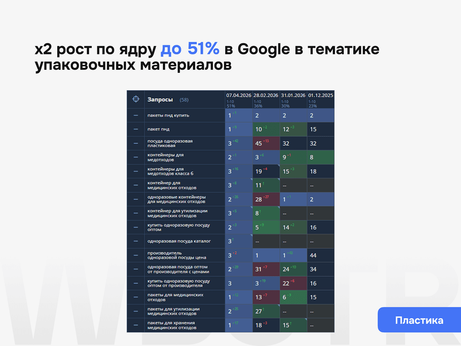 • Ежемесячная корректировка стратегии на основе того, какие группы слов реально дают рост